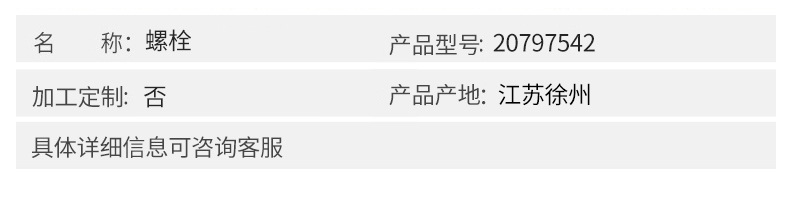 沃爾沃Volvo挖掘機配件 螺栓20797542,適用機型:EC140/160/170/180/200/210/220/235/240/250/290/300/ECR145/ECR235/ECR305/EW140/EW145/EW205/EW230等,具體詳情請咨詢客服!